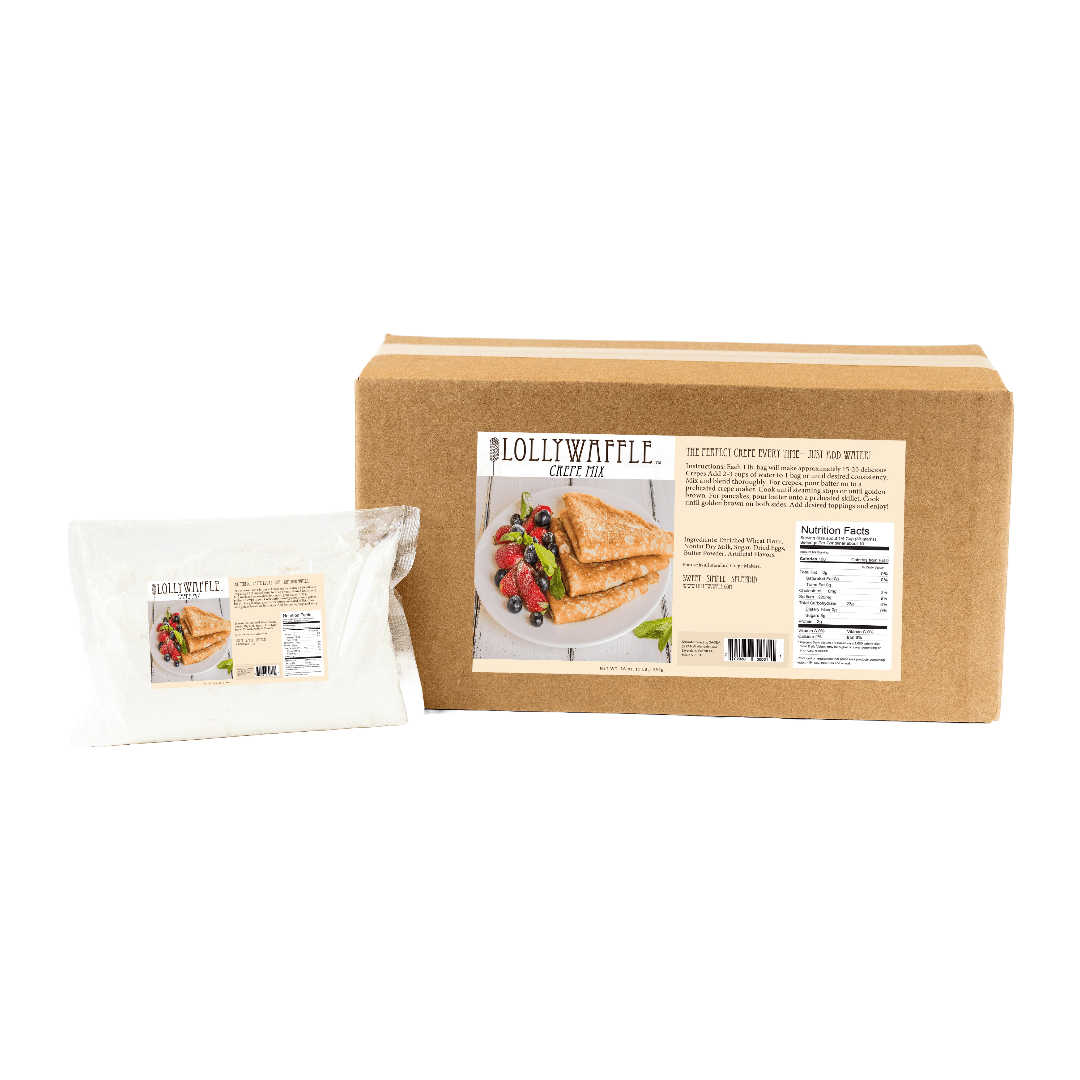 The LollyWaffle ready-to-use Crepe mix is a delicious Crepe mix that will make perfect Crepes time after time. Delicious with all of our Sagra drizzles or with syrup. Just add 2-3 cups of water per 1 lb. bag and pour into your Crepe maker or LollyWaffle machine. Made from the finest ingredients, the LollyWaffle is also competitively priced for the food service industry. Try Crepe Mix by LollyWaffle- 20 Lbs. today!