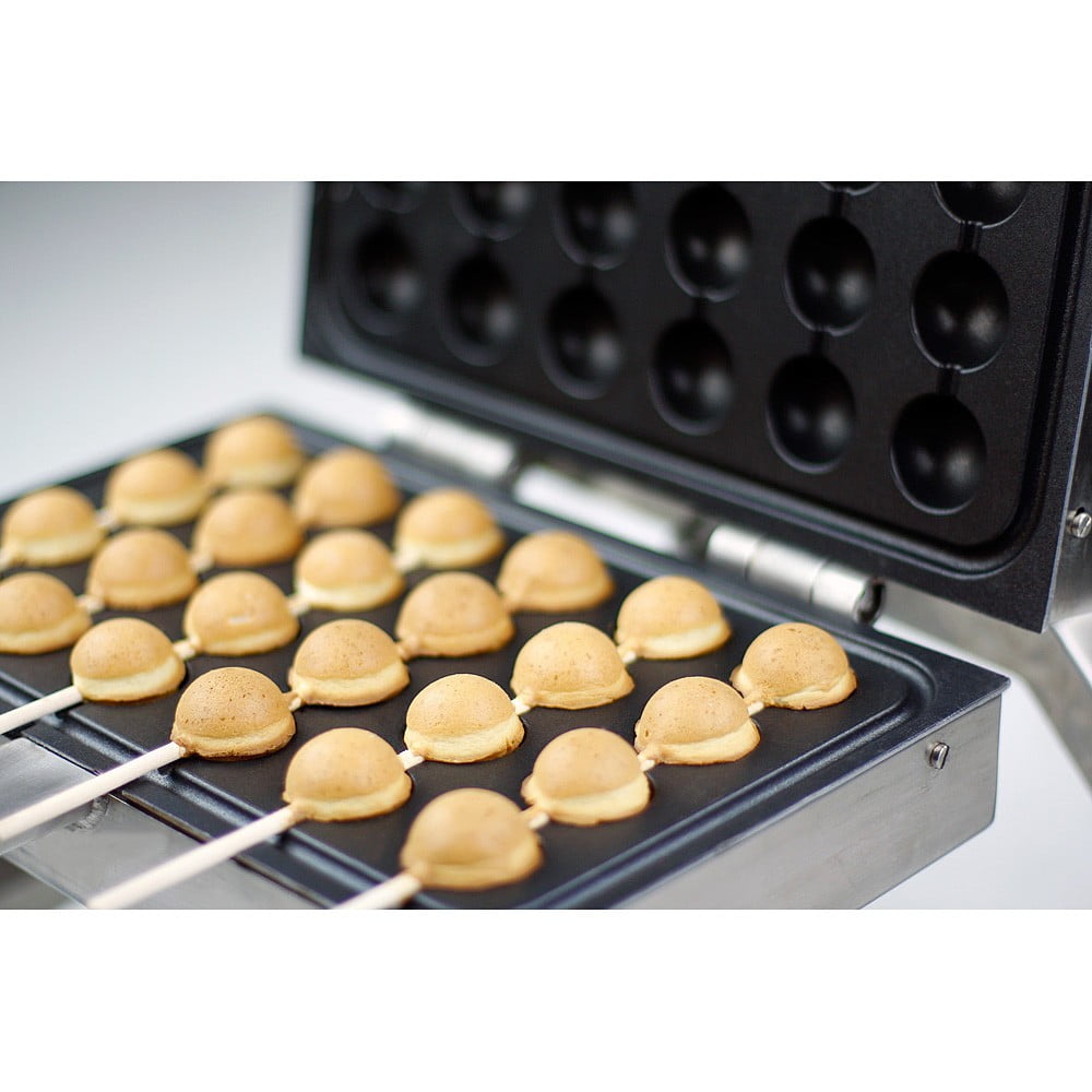 Rotating machine cooks perfect LollyWaffles– Works great with our LollyWaffle mixes– Makes six sticks or 24 individual bites (LollyBites)– Professional grade, one year commercial warranty